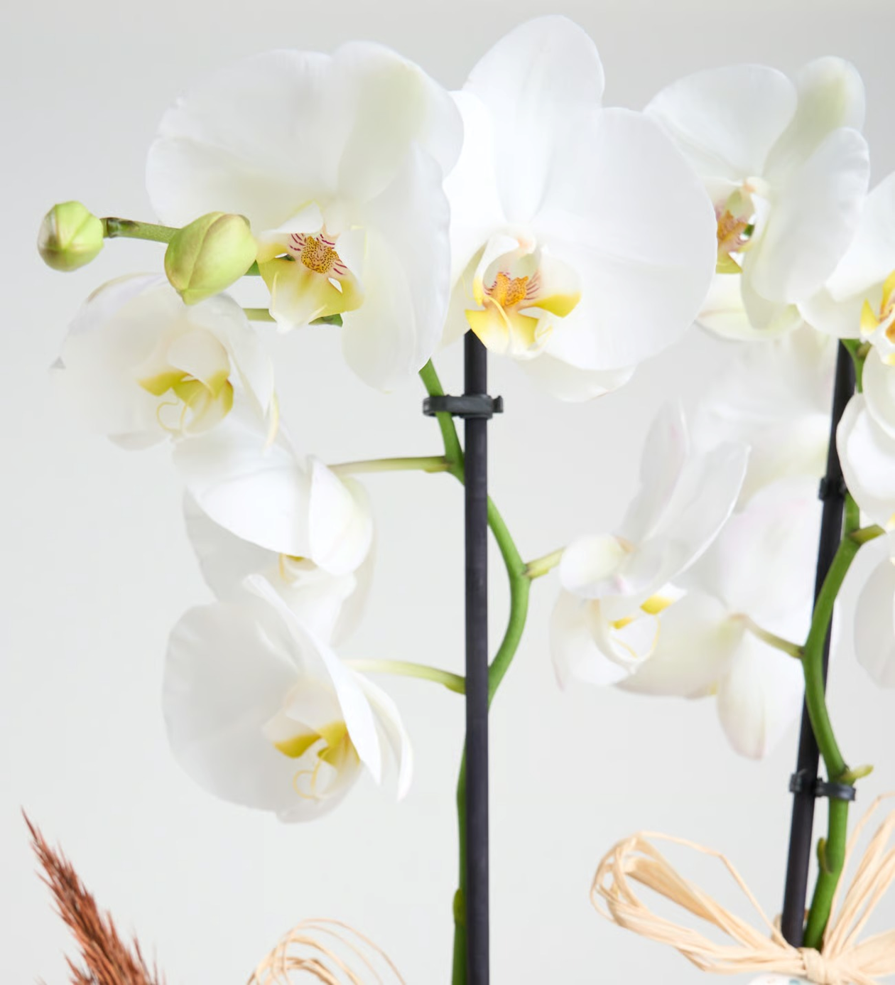 Özgün ve zarif bir hediye arayışında olanlar için beyaz orkide, mükemmel bir tercihtir. Beyaz orkideler, saflığı ve zarafeti simgelerken, “Sonsuz sevgi” anlamını taşımaktadır. Gazete buket kağıdıyla sarılı, beyaz çiftli orkide saksısı, şıklığı ve sade güzelliğiyle her türlü özel anı taçlandırmak için ideal bir seçimdir. Göz alıcı beyaz çiçekleriyle, sevdiklerinize ne kadar değer verdiğinizi ve onların hayatınızdaki yerini en zarif şekilde anlatır. Bu özel orkideler, beyaz Polimer saksı içinde zarif bir şekilde sunulurken, burlap ip ve kurutulmuş limon gibi doğal dokunuşlarla çevrelenmiştir. Hem sade hem de modern tasarımıyla evinize veya ofisinize huzur ve şıklık katacaktır. Ayrıca, üzerine eklenmiş olan "Senin için hazırlandı" pankartı, hediye verdiğiniz kişiye olan sevginizi ve özel hislerinizi kelimelerle ifade etmenizi sağlar. Özel günlerde veya günlük hayatta anlamlı bir jest yapmak isteyenler için bu aranjman, hem romantik hem de anlamlı bir hediye alternatifi sunmaktadır. Sevdiklerinize unutulmaz bir hediye verebilmek için bu eşsiz orkide aranjmanını sipariş edebilirsiniz. Siparişiniz sonrasında çıkacak “Not oluşturma” sayfasında birkaç cümlelik not oluşturarak hediyenizi daha anlamlı bir hale getirmeyi unutmayın.